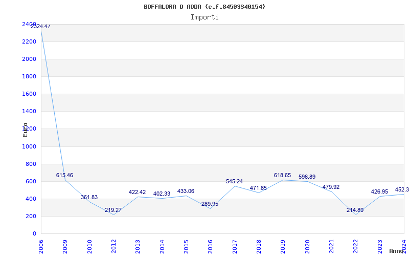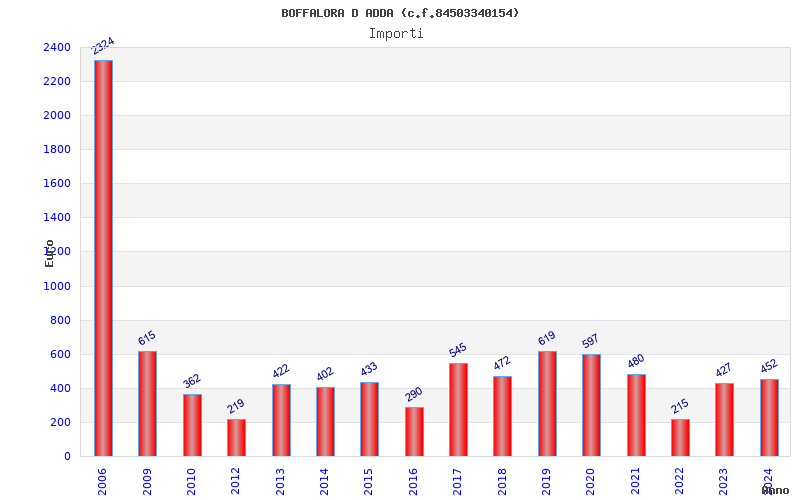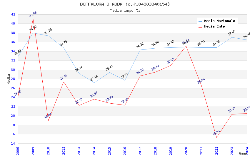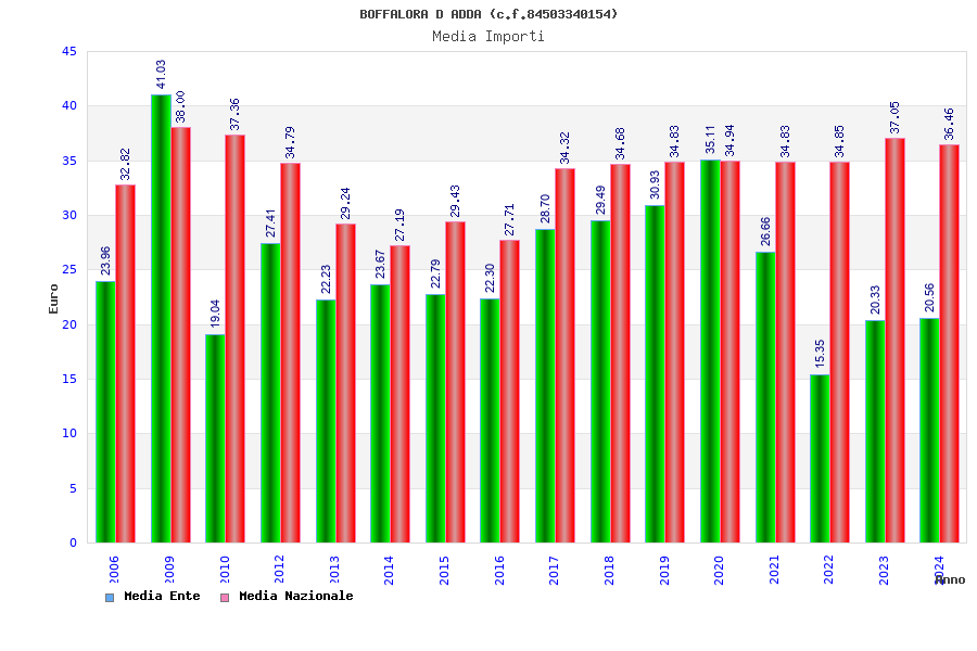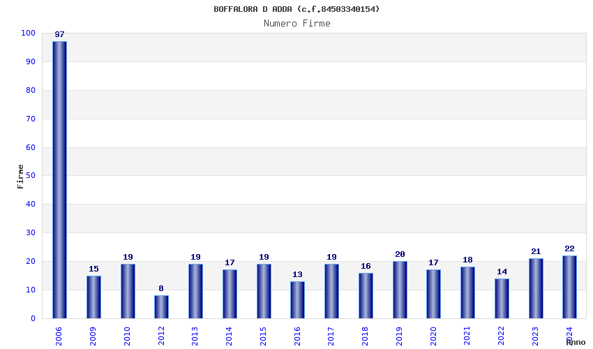 | Anno | Firme | Importi | Media | Naz. | Reg. | Prov. | Comu. |