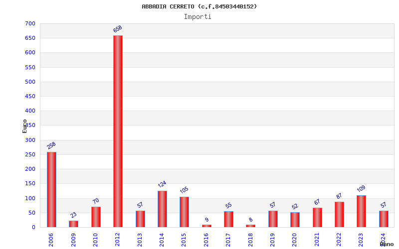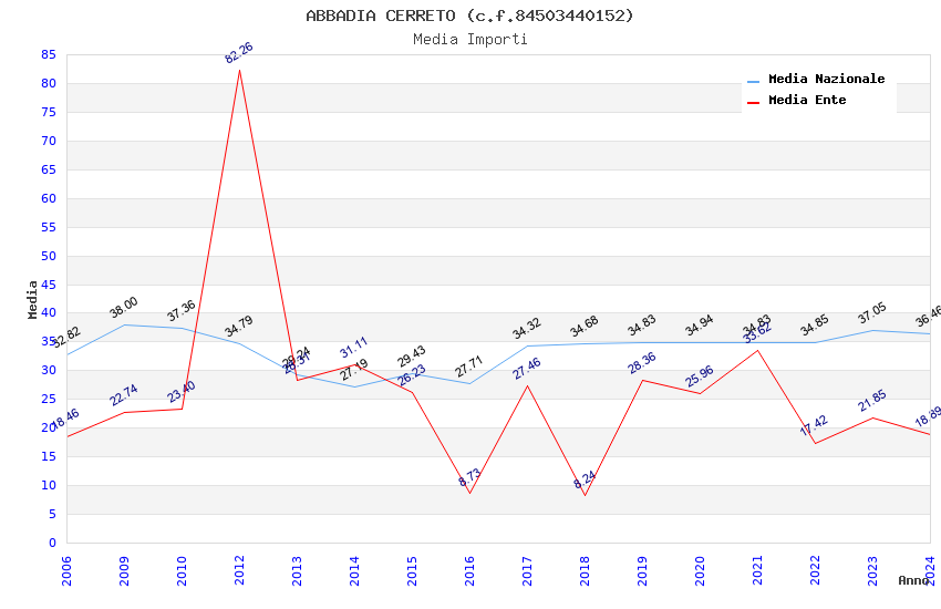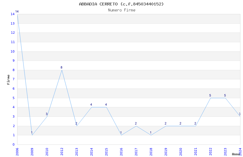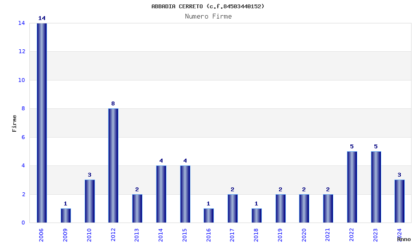 | Anno | Firme | Importi | Media | Naz. | Reg. | Prov. | Comu. |