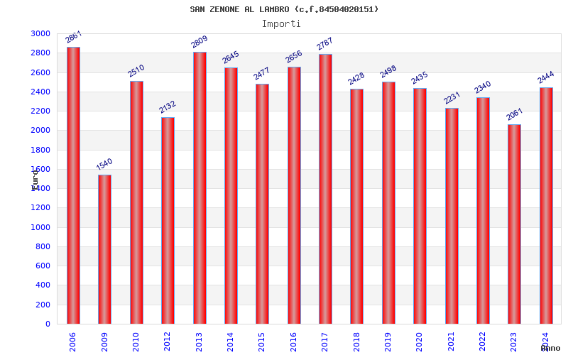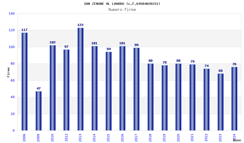 | Anno | Firme | Importi | Media | Naz. | Reg. | Prov. | Comu. |