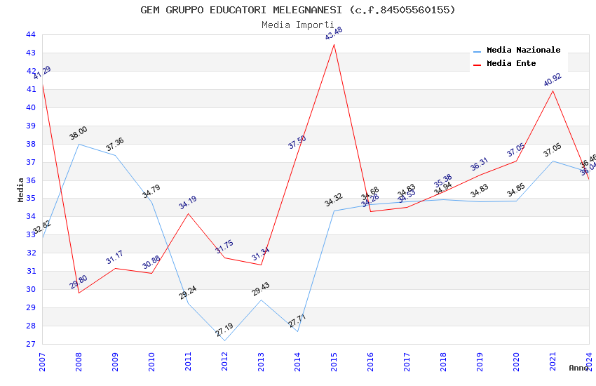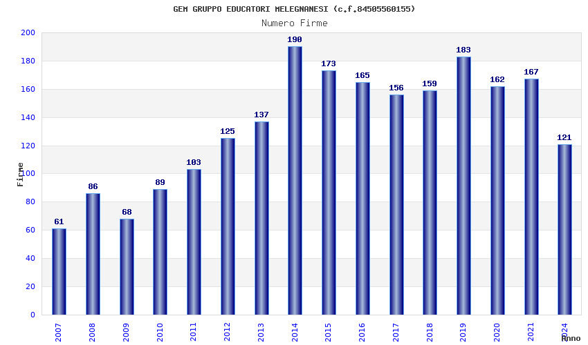 | Anno | Firme | Importi | Media | Naz. | Reg. | Prov. | Comu. |