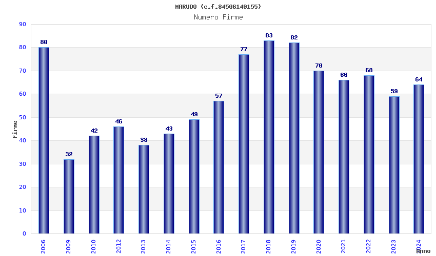 | Anno | Firme | Importi | Media | Naz. | Reg. | Prov. | Comu. |