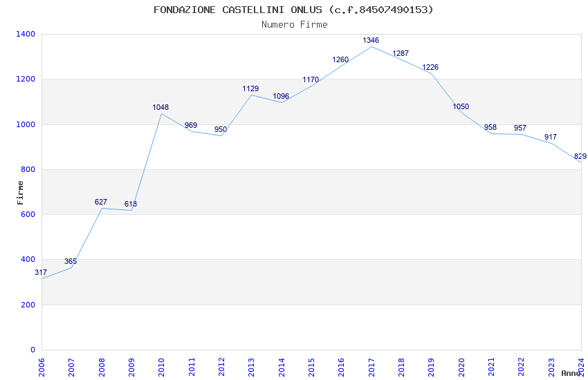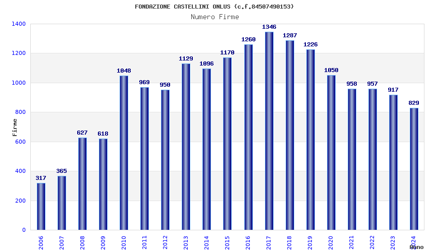 | Anno | Firme | Importi | Media | Naz. | Reg. | Prov. | Comu. |
