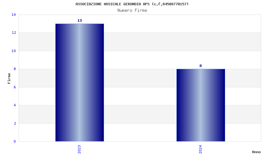 | Anno | Firme | Importi | Media | Naz. | Reg. | Prov. | Comu. |