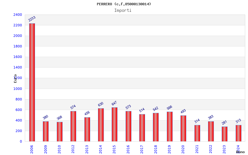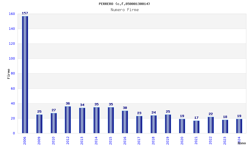 | Anno | Firme | Importi | Media | Naz. | Reg. | Prov. | Comu. |
