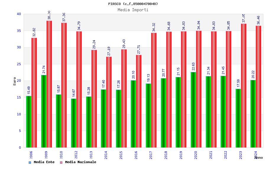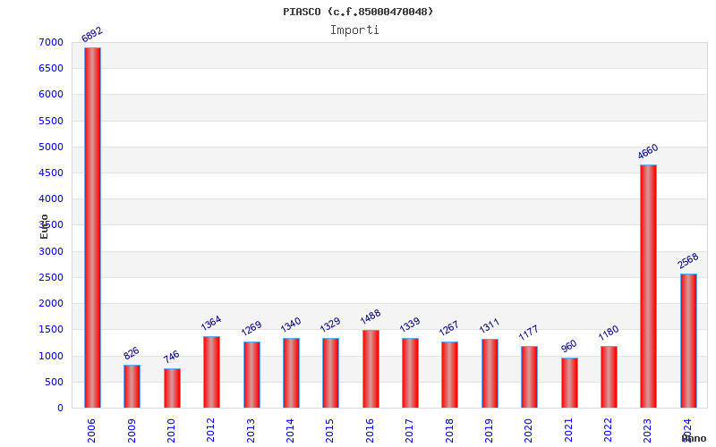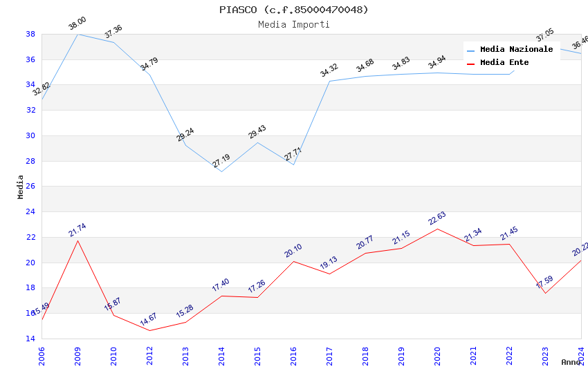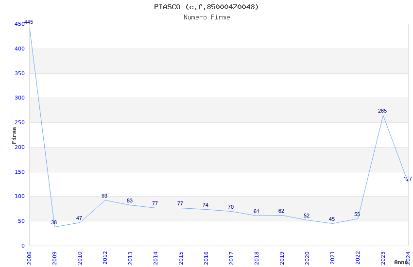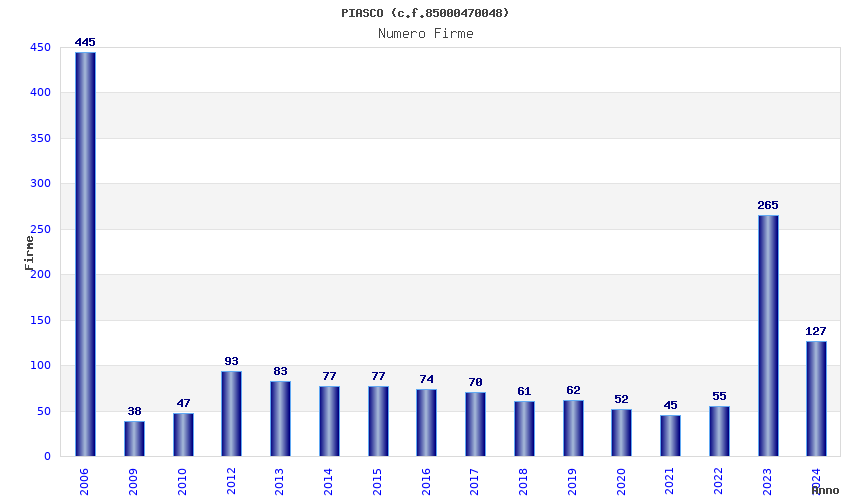| Anno | Firme | Importi | Media | Naz. | Reg. | Prov. | Comu. |