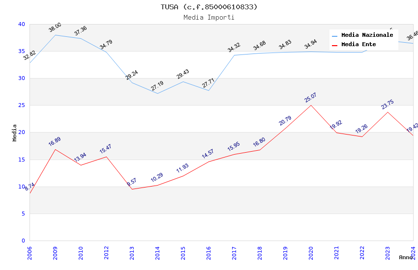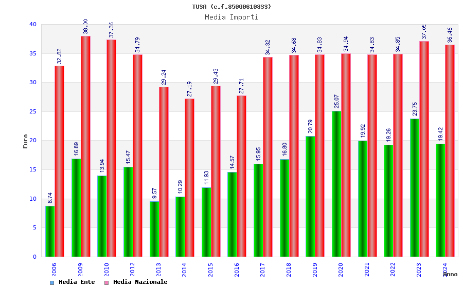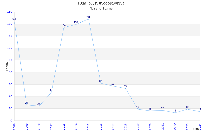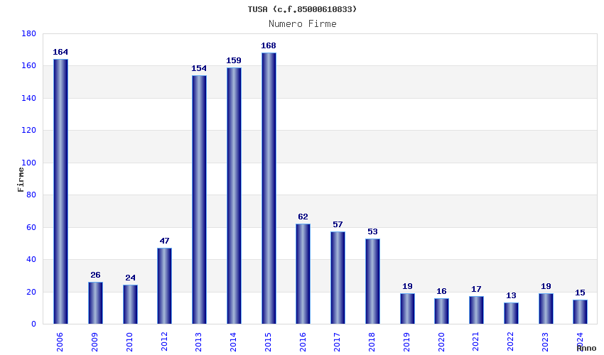 | Anno | Firme | Importi | Media | Naz. | Reg. | Prov. | Comu. |