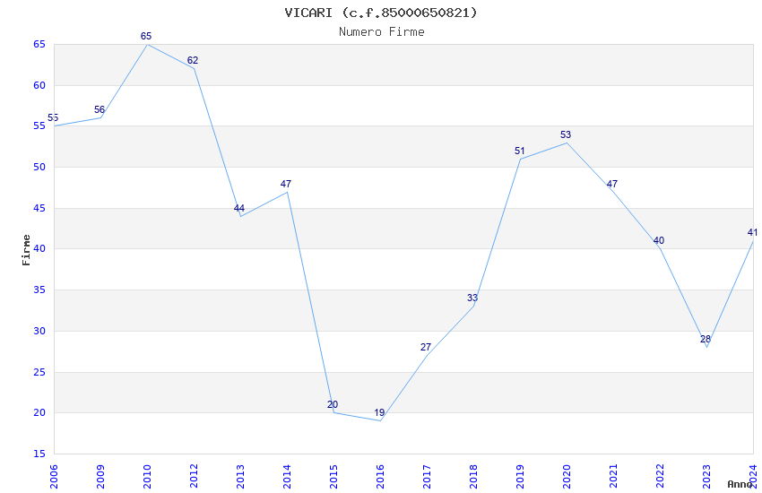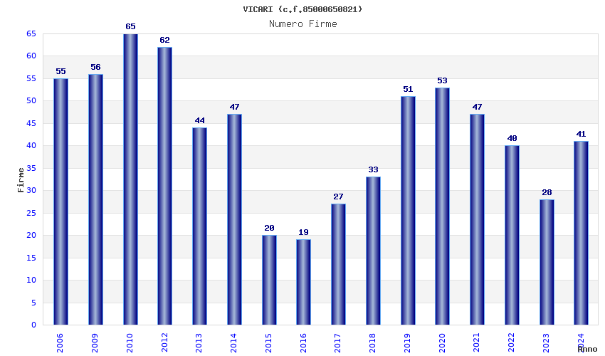 | Anno | Firme | Importi | Media | Naz. | Reg. | Prov. | Comu. |