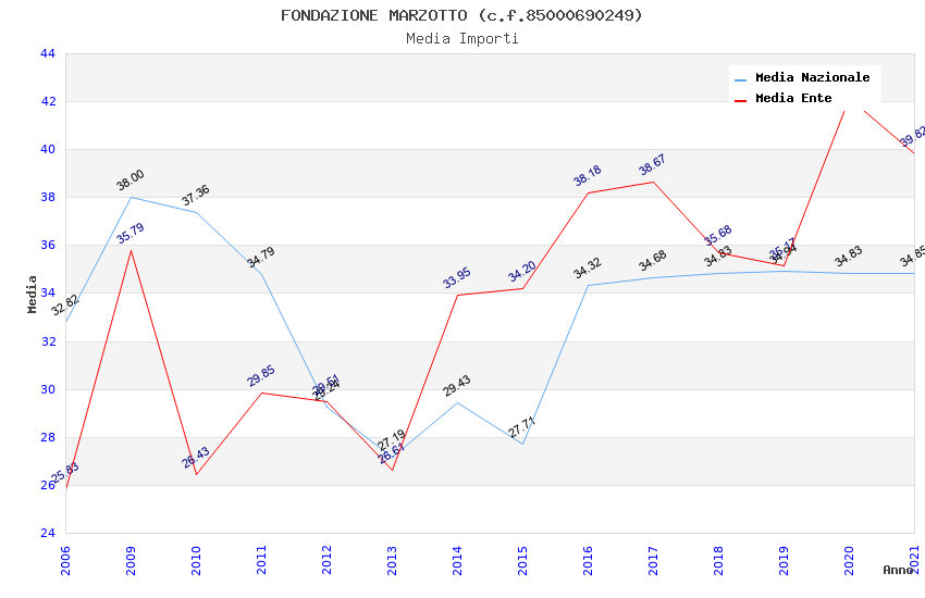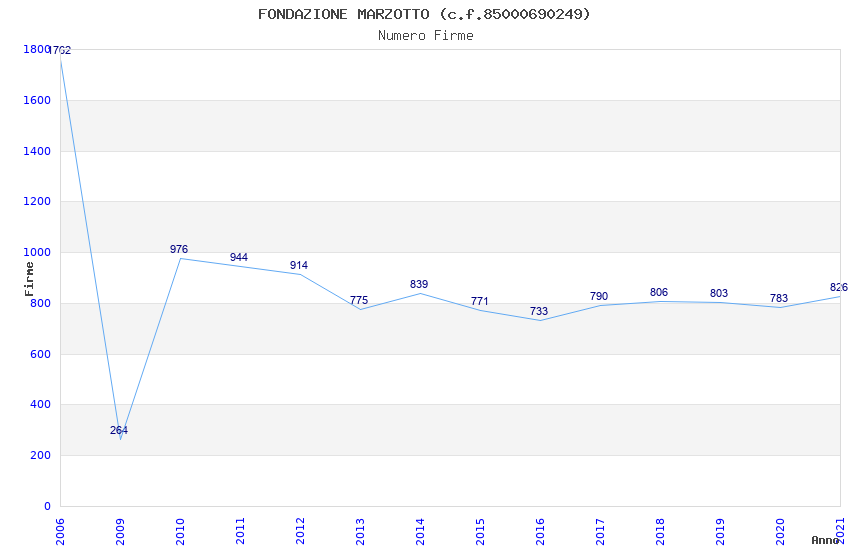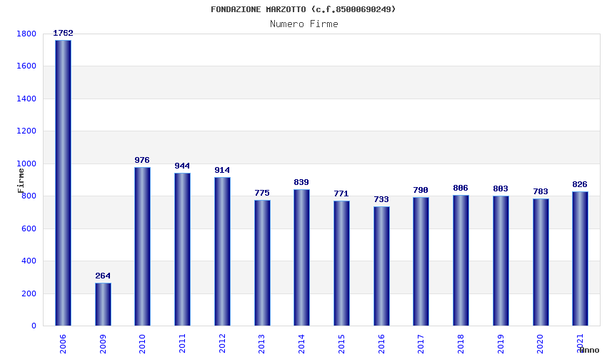 | Anno | Firme | Importi | Media | Naz. | Reg. | Prov. | Comu. |