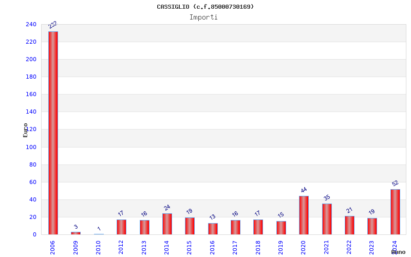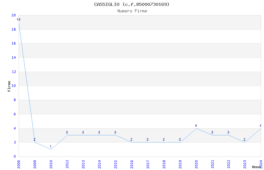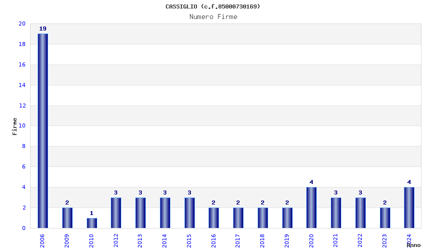 | Anno | Firme | Importi | Media | Naz. | Reg. | Prov. | Comu. |