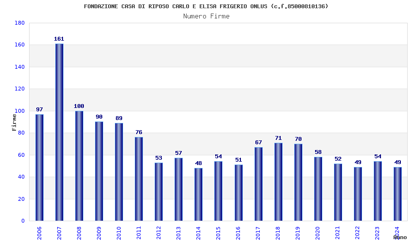 | Anno | Firme | Importi | Media | Naz. | Reg. | Prov. | Comu. |