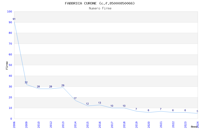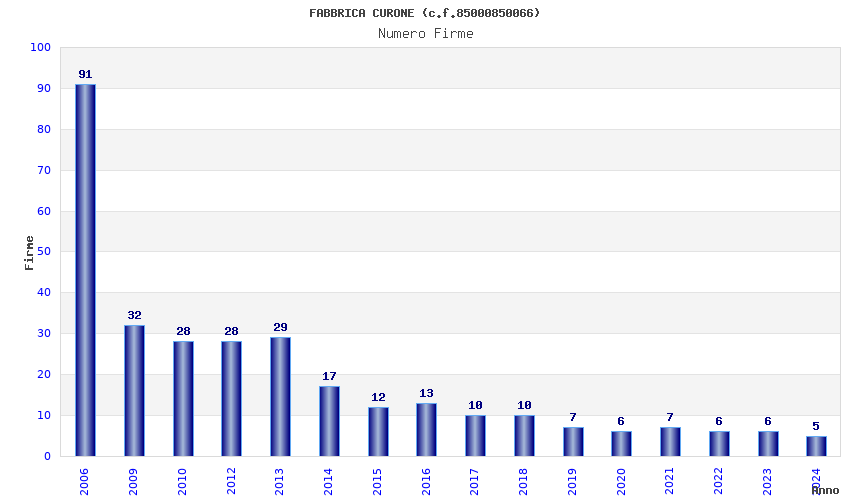 | Anno | Firme | Importi | Media | Naz. | Reg. | Prov. | Comu. |