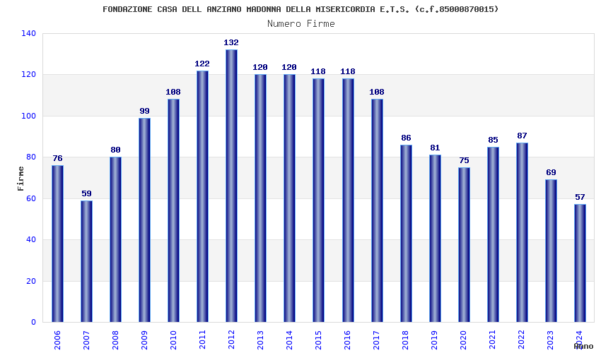 | Anno | Firme | Importi | Media | Naz. | Reg. | Prov. | Comu. |