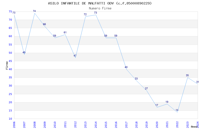 | 2014 | 73 | 1.812,93 | 24,83 | 23.081 | 672 | 339 | 4 |