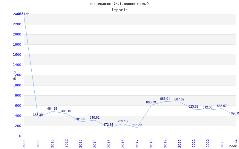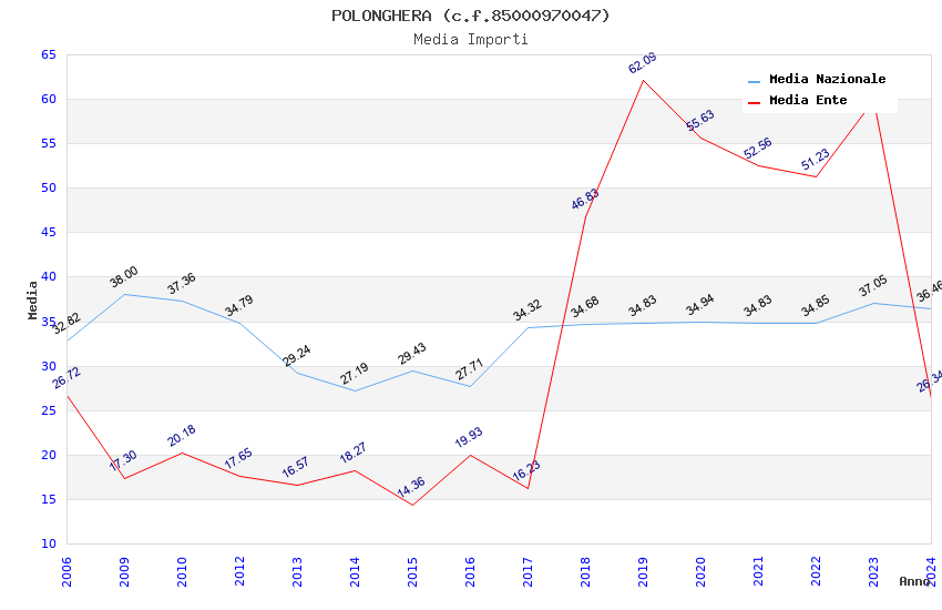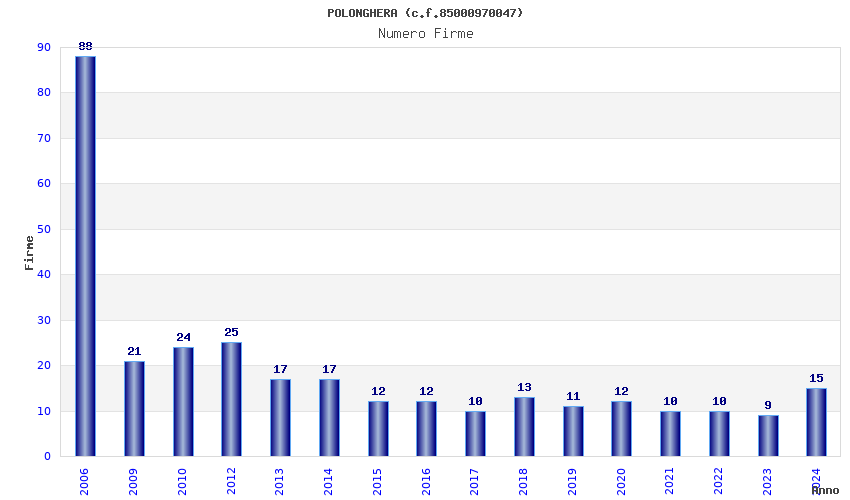 | Anno | Firme | Importi | Media | Naz. | Reg. | Prov. | Comu. |