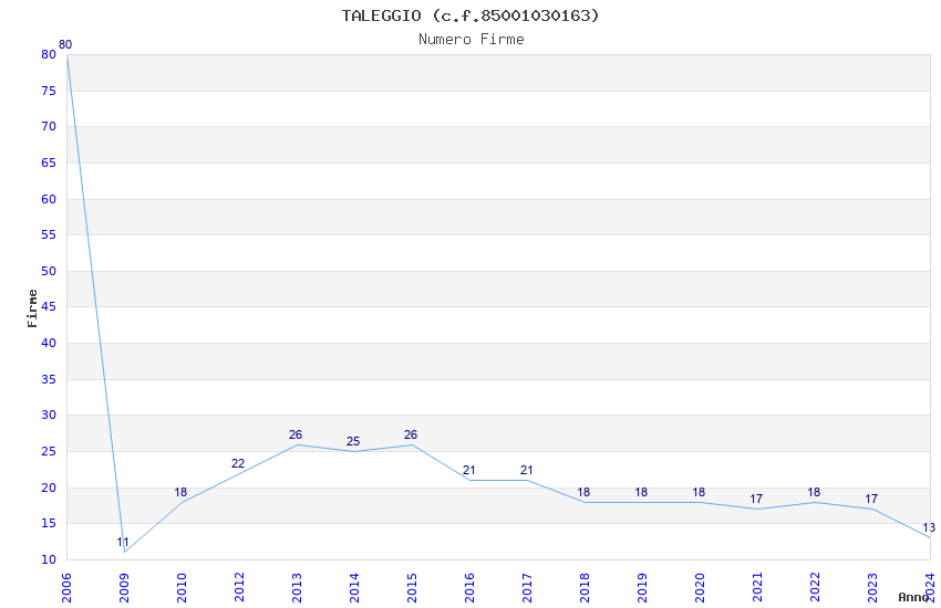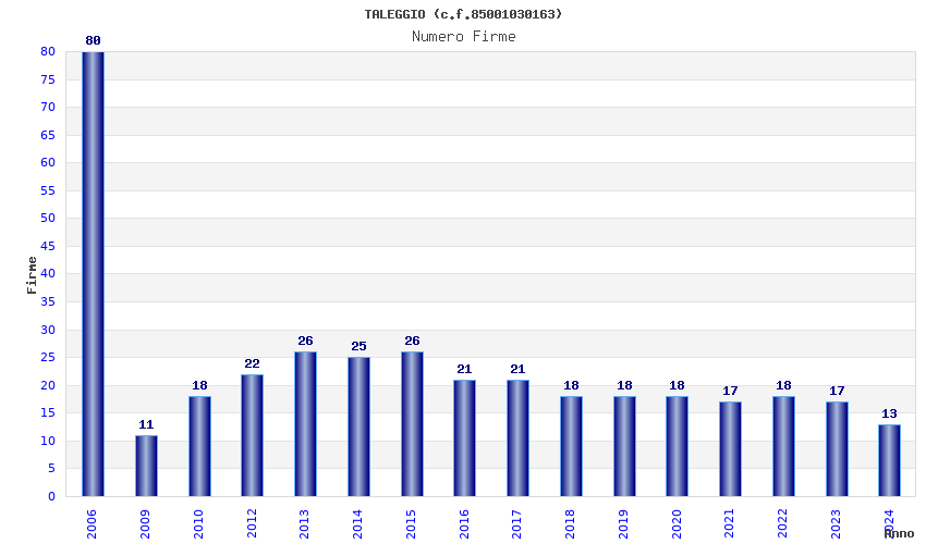 | Anno | Firme | Importi | Media | Naz. | Reg. | Prov. | Comu. |