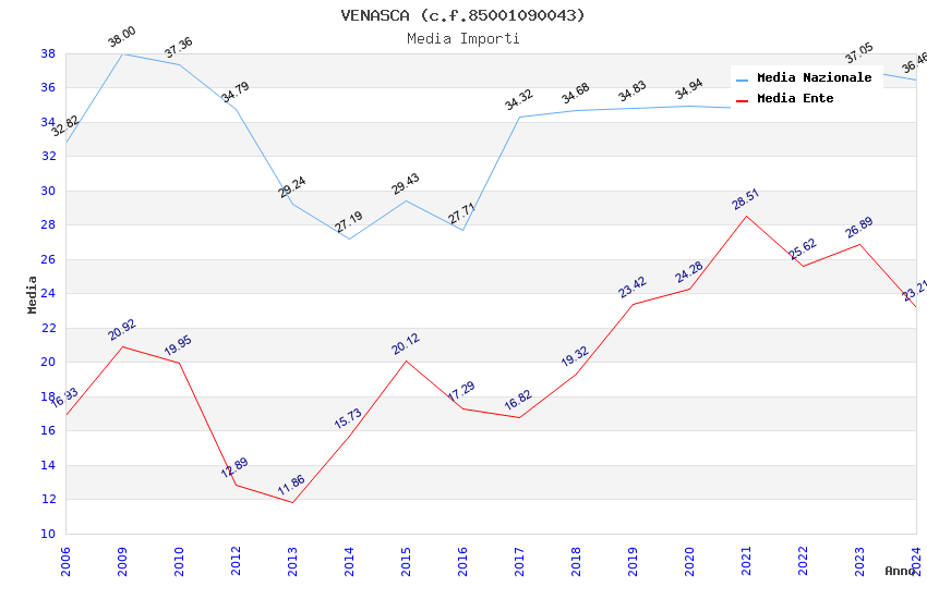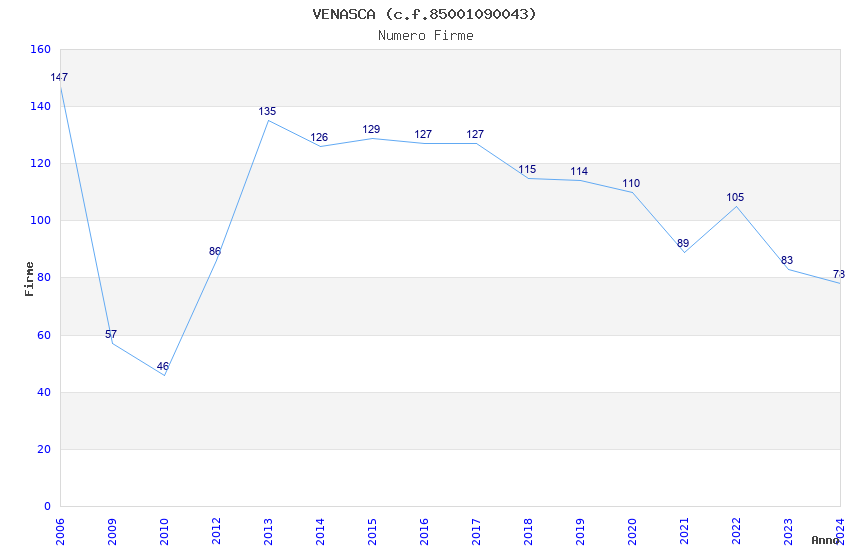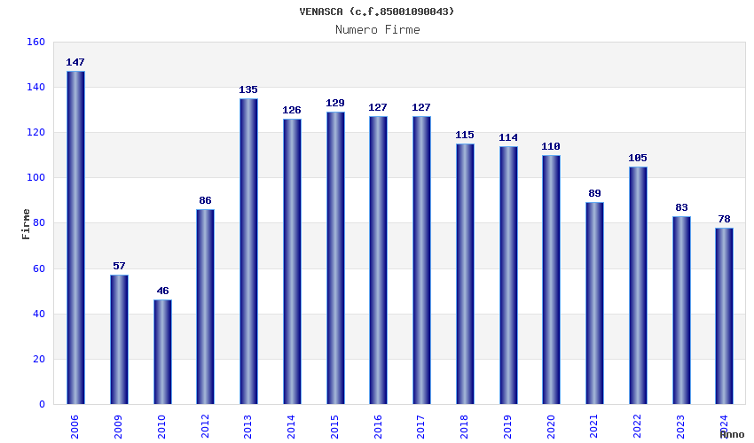 | Anno | Firme | Importi | Media | Naz. | Reg. | Prov. | Comu. |