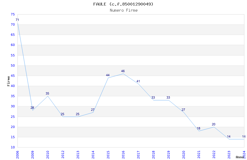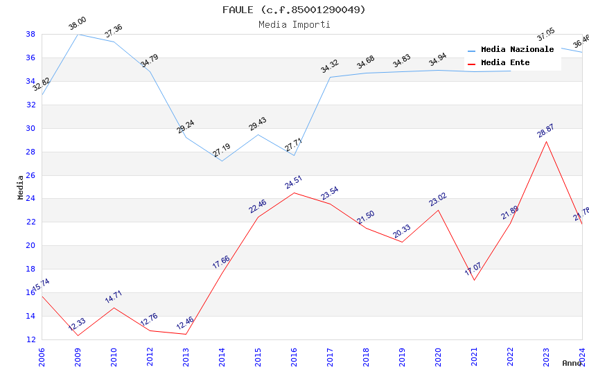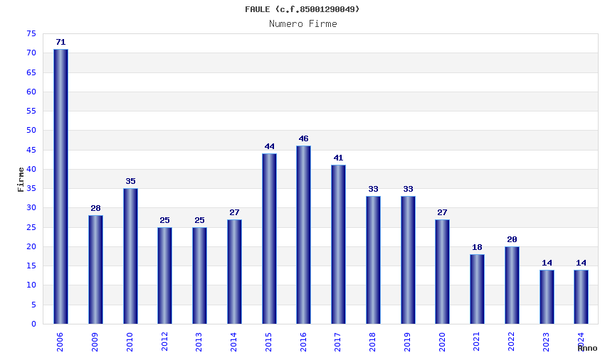 | Anno | Firme | Importi | Media | Naz. | Reg. | Prov. | Comu. |