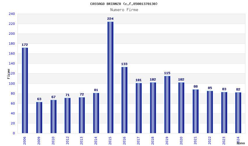 | 2015 | 224 | 5.086,76 | 22,71 | 10.460 | 2.474 | 107 | 3 |