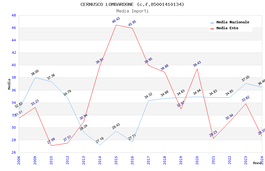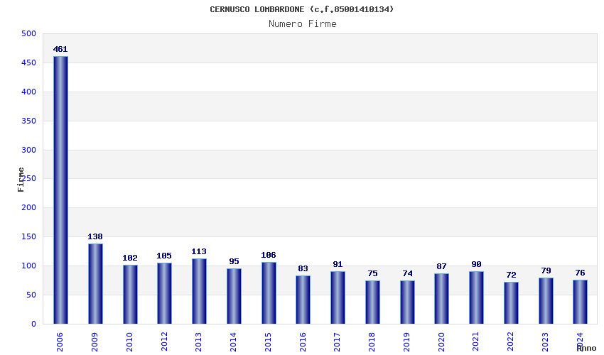 | Anno | Firme | Importi | Media | Naz. | Reg. | Prov. | Comu. |