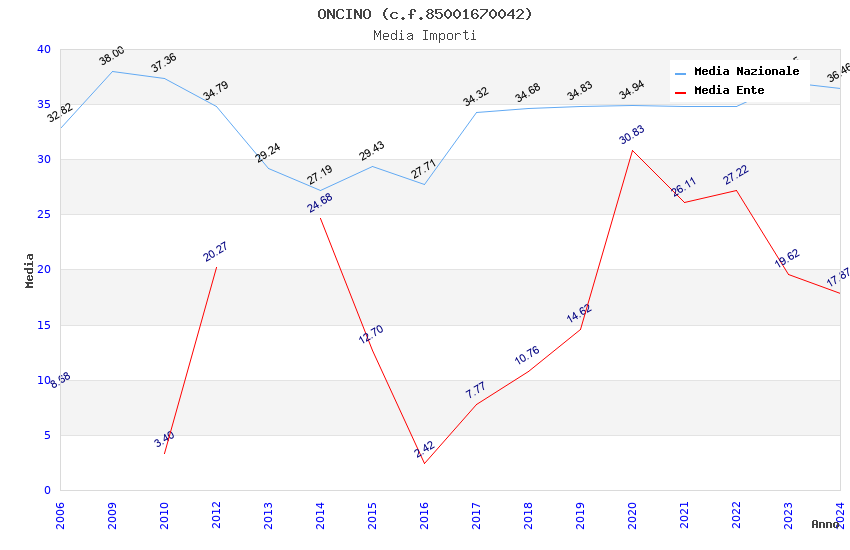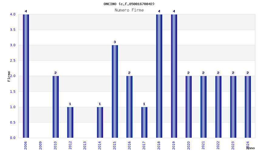 Anno Firme Importi Media Naz. Reg. Prov. Comu.