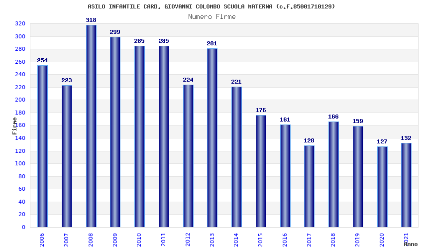 | Anno | Firme | Importi | Media | Naz. | Reg. | Prov. | Comu. |