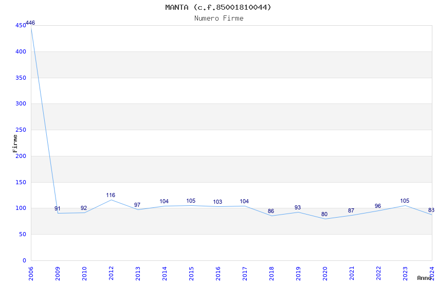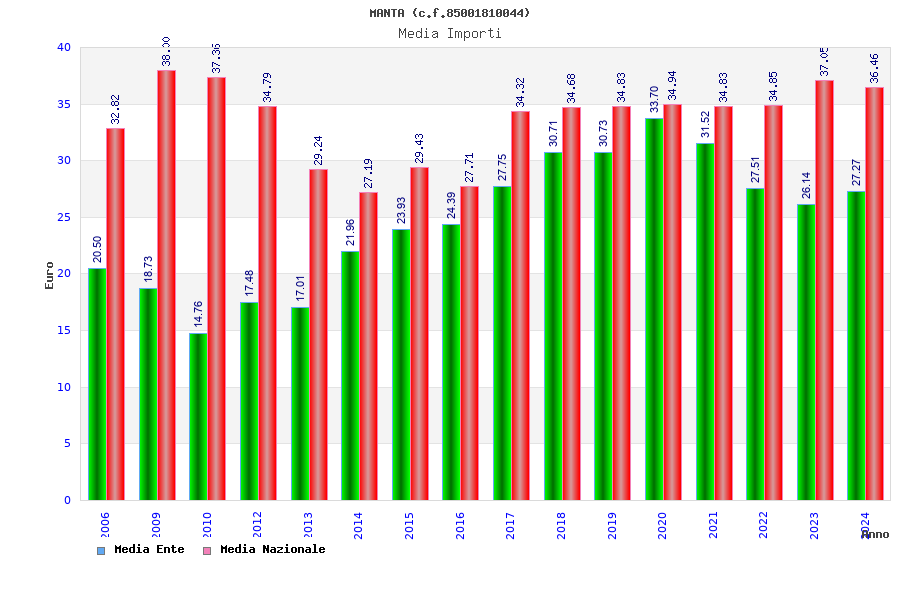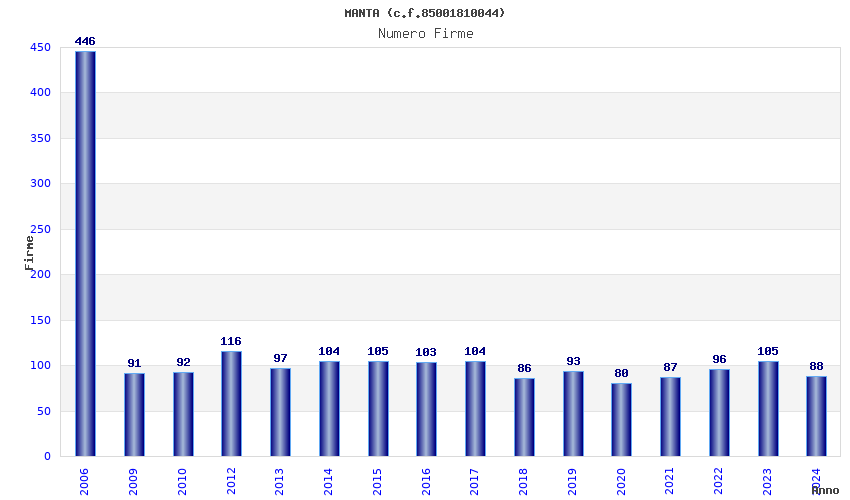 | Anno | Firme | Importi | Media | Naz. | Reg. | Prov. | Comu. |