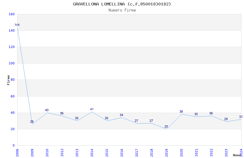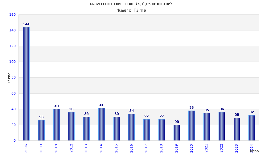 | Anno | Firme | Importi | Media | Naz. | Reg. | Prov. | Comu. |