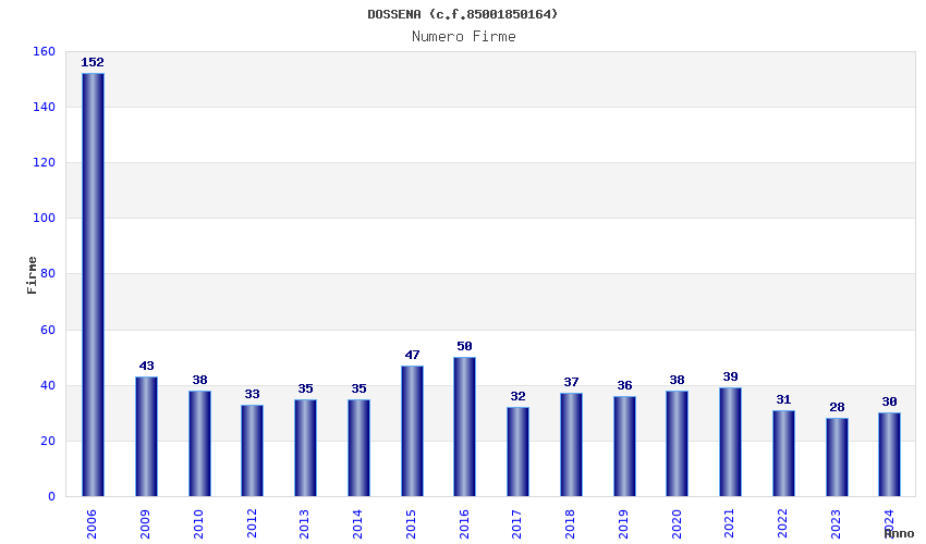 | Anno | Firme | Importi | Media | Naz. | Reg. | Prov. | Comu. |