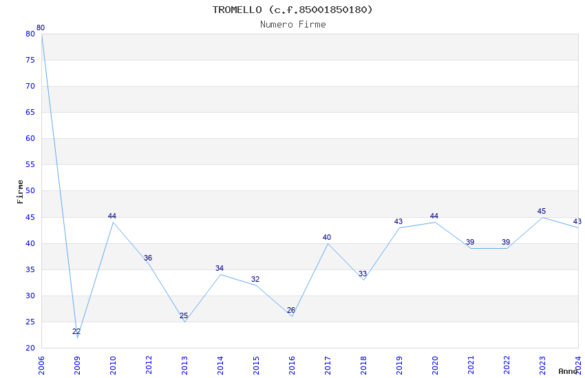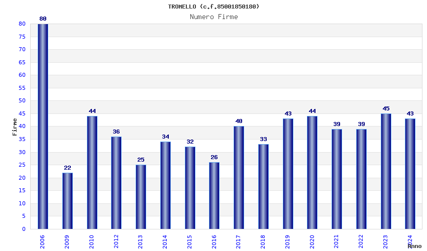 | Anno | Firme | Importi | Media | Naz. | Reg. | Prov. | Comu. |