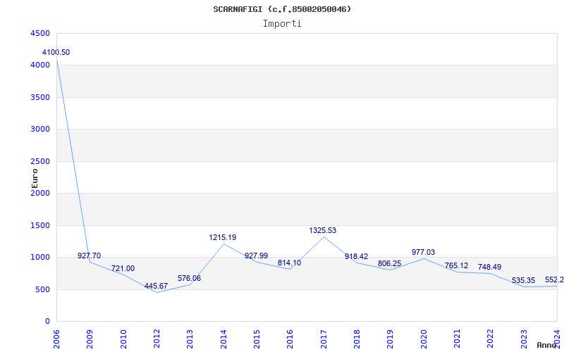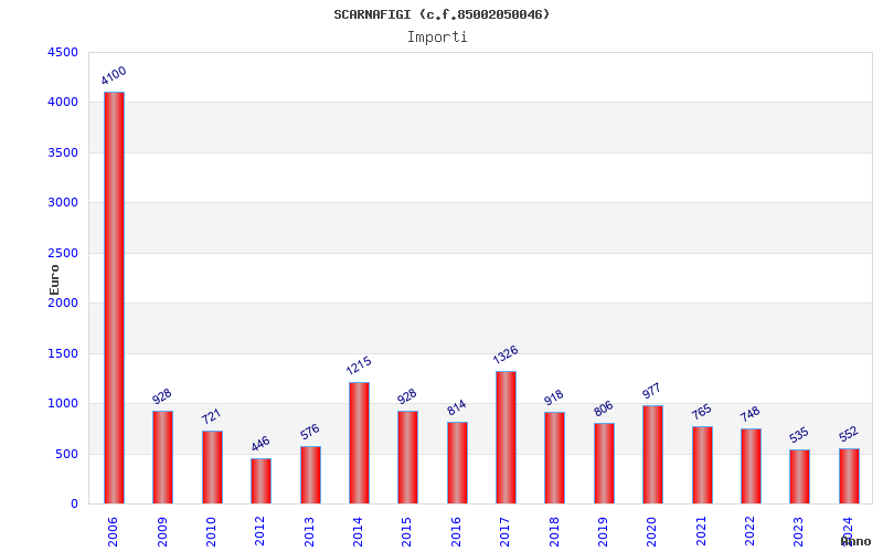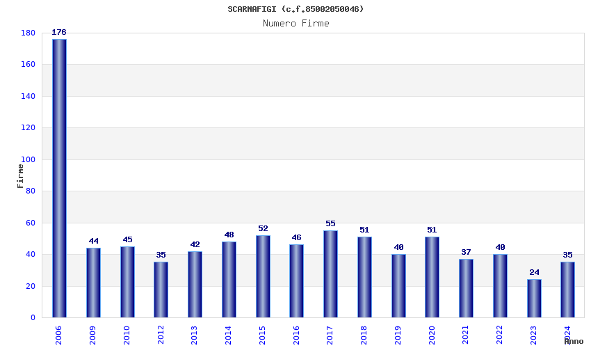 | Anno | Firme | Importi | Media | Naz. | Reg. | Prov. | Comu. |