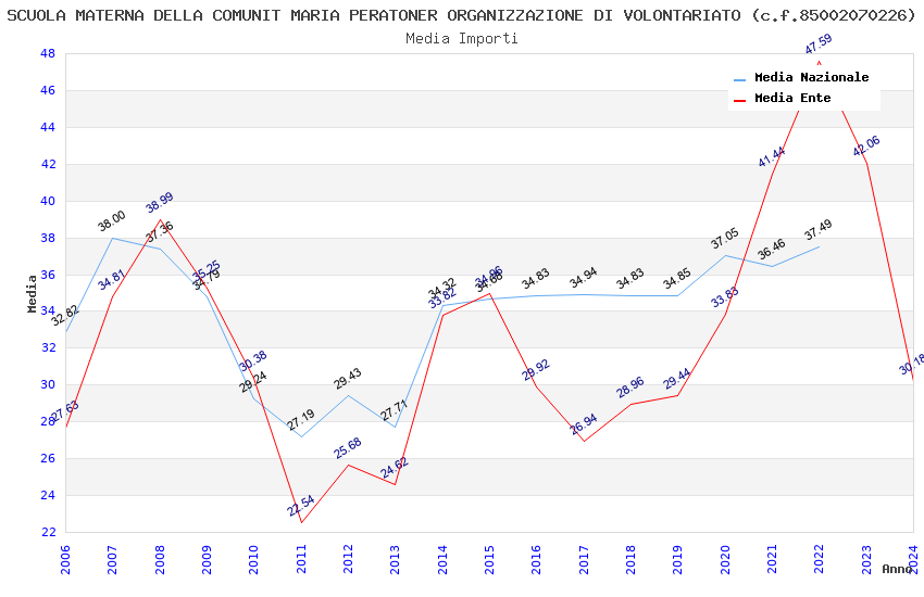 | Anno | Firme | Importi | Media | Naz. | Reg. | Prov. | Comu. |
