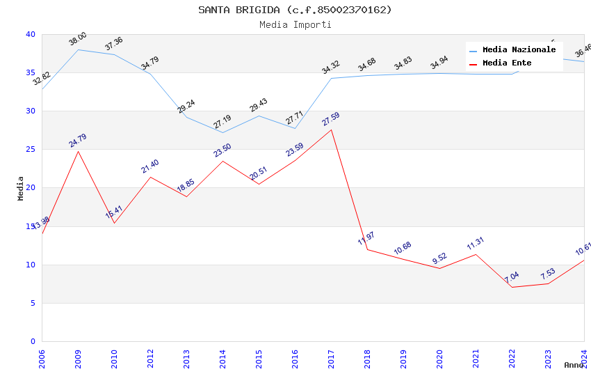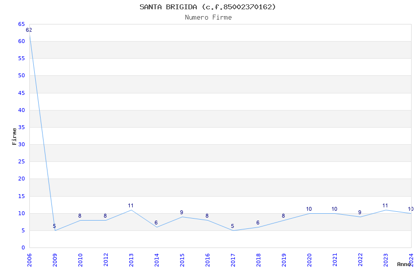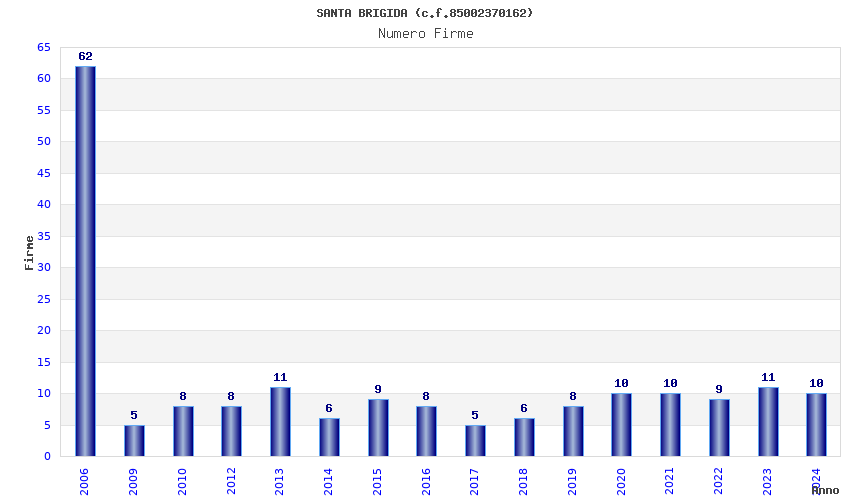 | Anno | Firme | Importi | Media | Naz. | Reg. | Prov. | Comu. |