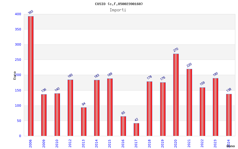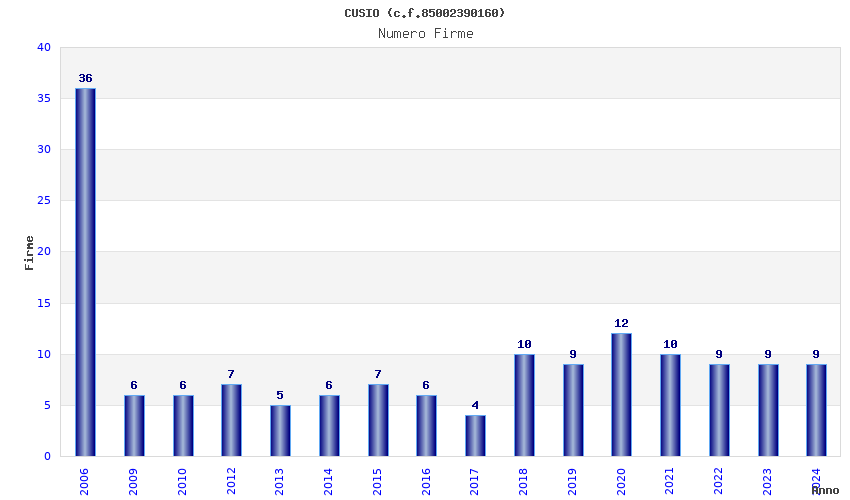 | Anno | Firme | Importi | Media | Naz. | Reg. | Prov. | Comu. |