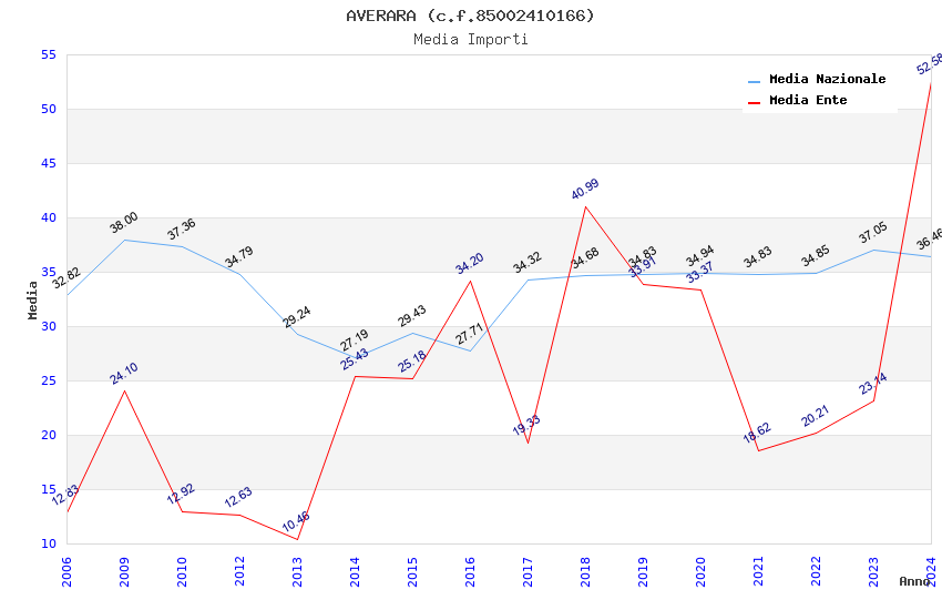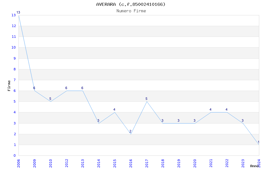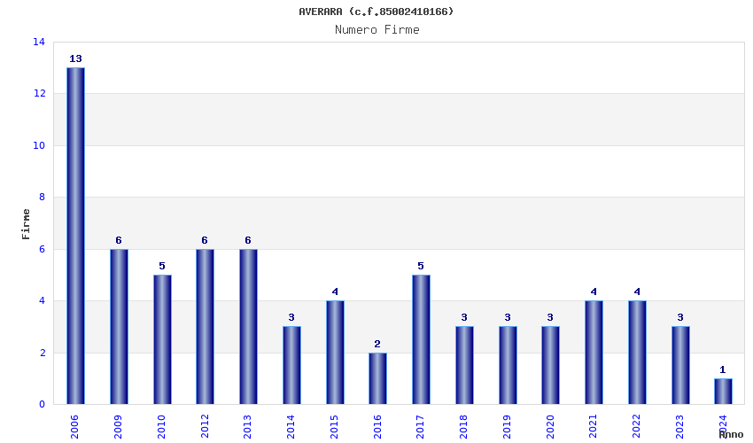 | Anno | Firme | Importi | Media | Naz. | Reg. | Prov. | Comu. |
