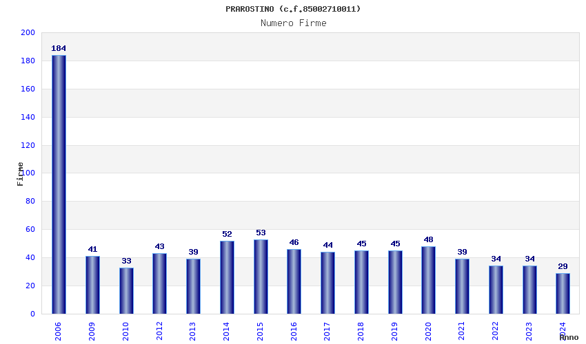 Anno Firme Importi Media Naz. Reg. Prov. Comu.