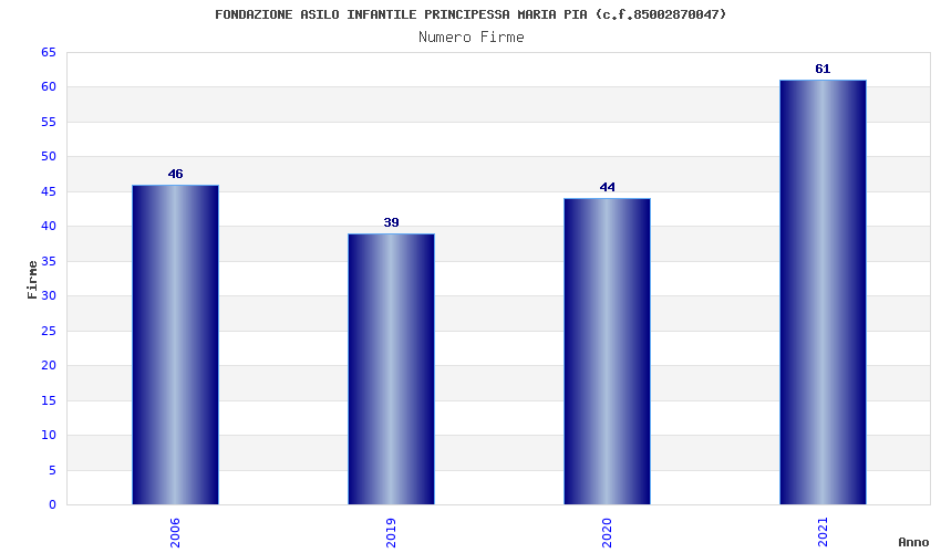 | Anno | Firme | Importi | Media | Naz. | Reg. | Prov. | Comu. |