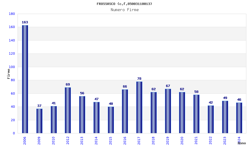 | Anno | Firme | Importi | Media | Naz. | Reg. | Prov. | Comu. |