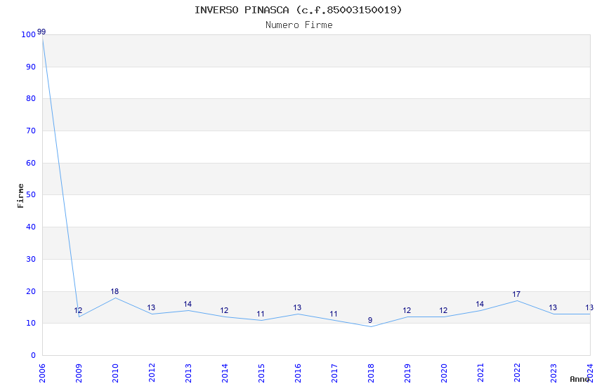 | Anno | Firme | Importi | Media | Naz. | Reg. | Prov. | Comu. |