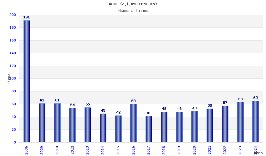 | Anno | Firme | Importi | Media | Naz. | Reg. | Prov. | Comu. |