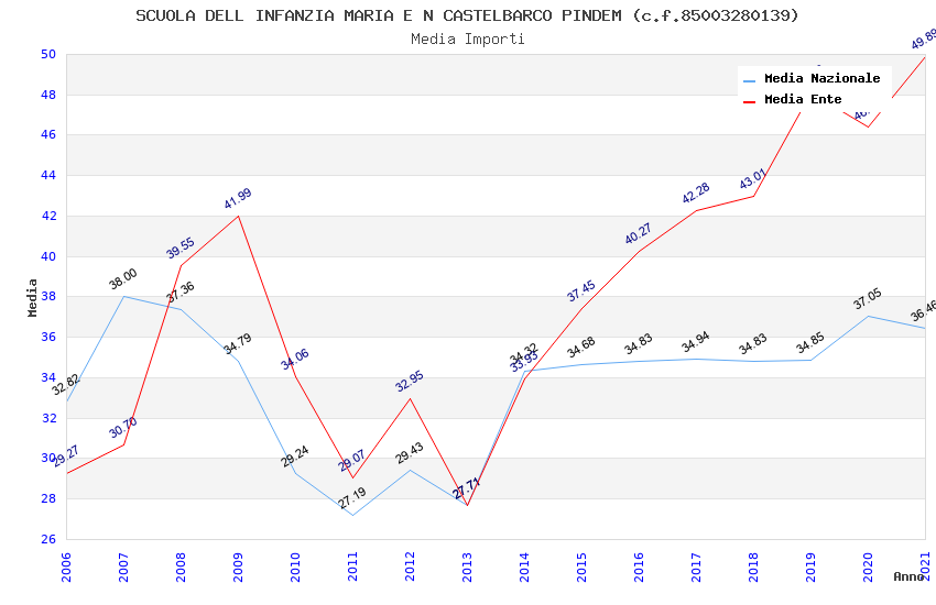 | Anno | Firme | Importi | Media | Naz. | Reg. | Prov. | Comu. |