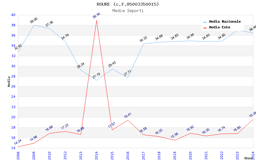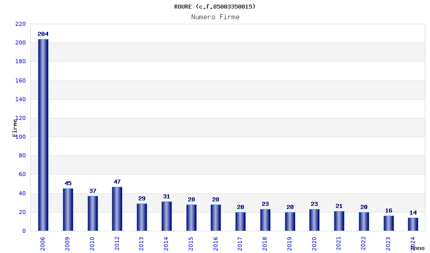 | Anno | Firme | Importi | Media | Naz. | Reg. | Prov. | Comu. |