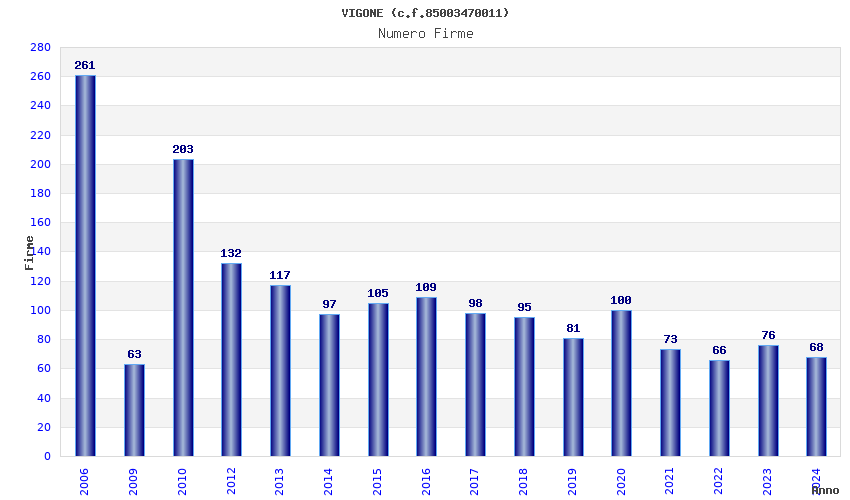 Anno Firme Importi Media Naz. Reg. Prov. Comu.