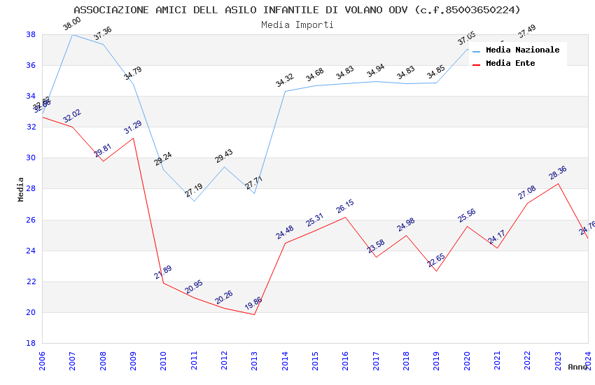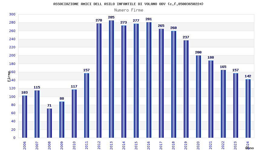 | Anno | Firme | Importi | Media | Naz. | Reg. | Prov. | Comu. |