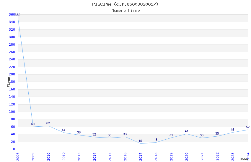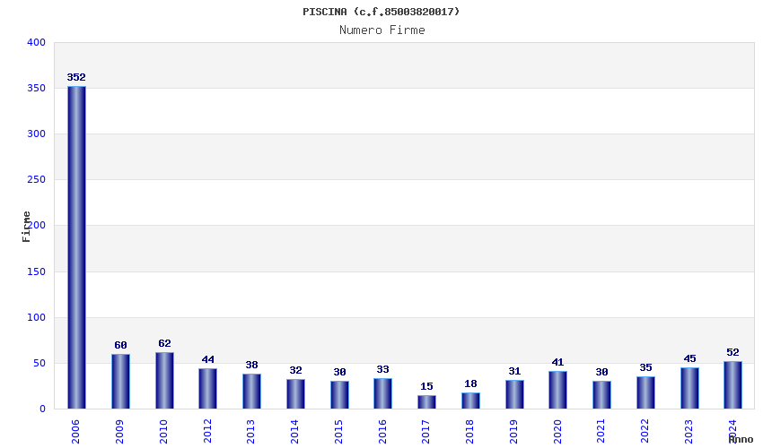 | Anno | Firme | Importi | Media | Naz. | Reg. | Prov. | Comu. |
