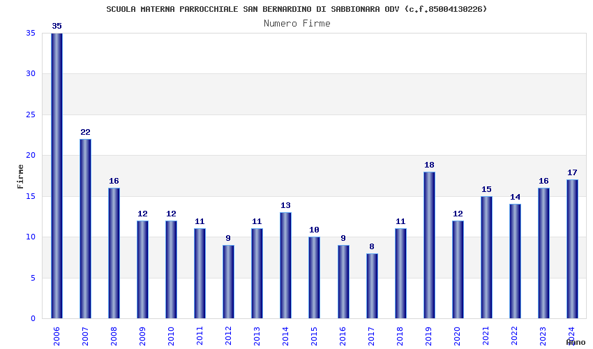| Anno | Firme | Importi | Media | Naz. | Reg. | Prov. | Comu. |