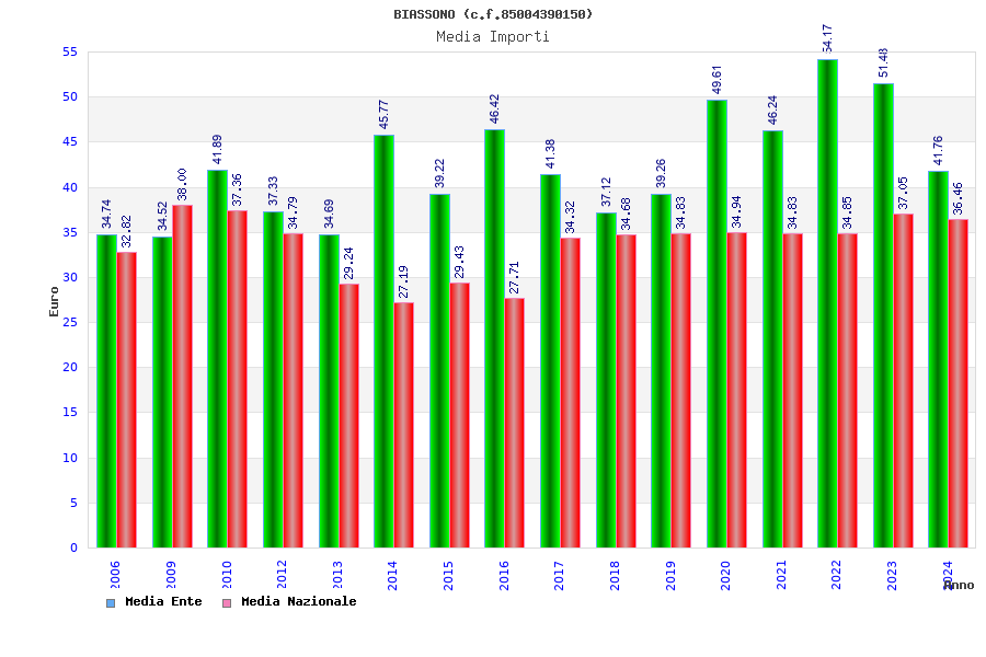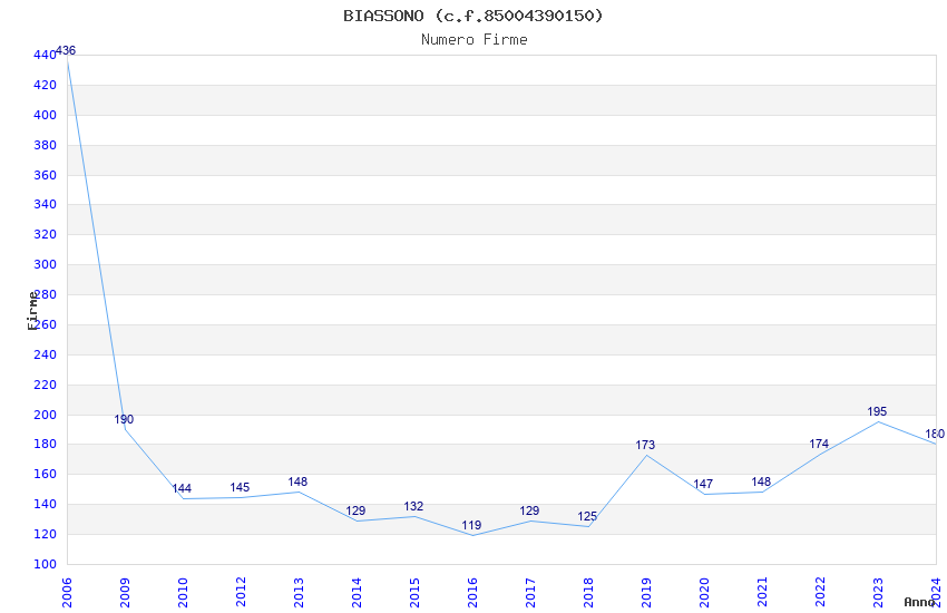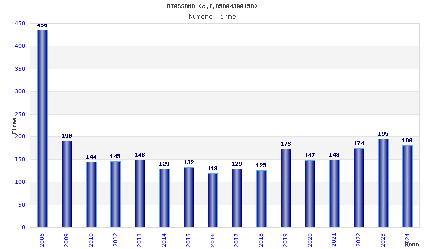 | Anno | Firme | Importi | Media | Naz. | Reg. | Prov. | Comu. |