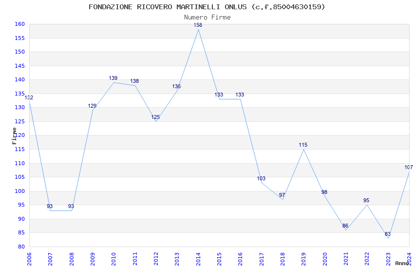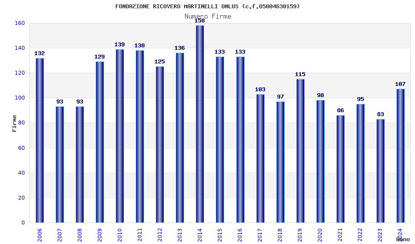 | Anno | Firme | Importi | Media | Naz. | Reg. | Prov. | Comu. |