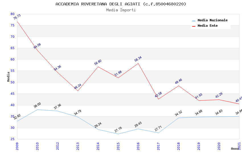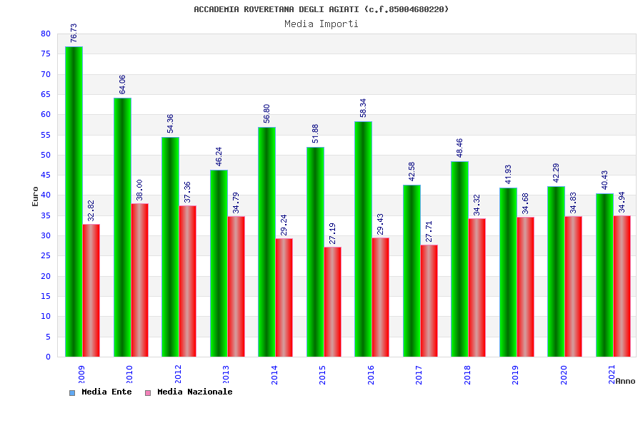 | Anno | Firme | Importi | Media | Naz. | Reg. | Prov. | Comu. |