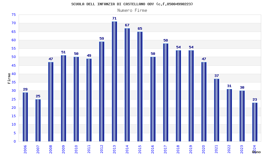 | Anno | Firme | Importi | Media | Naz. | Reg. | Prov. | Comu. |