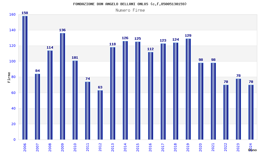 | Anno | Firme | Importi | Media | Naz. | Reg. | Prov. | Comu. |